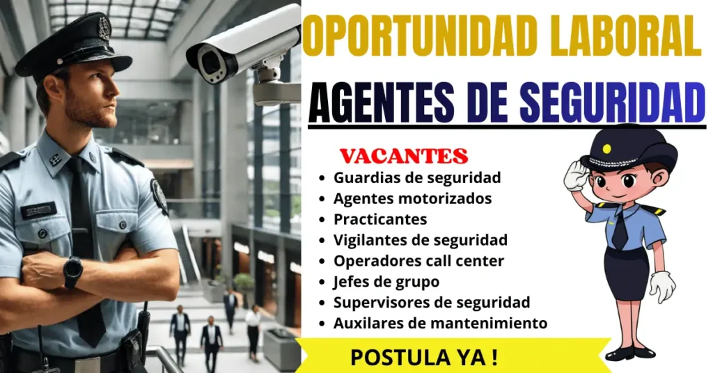 Vacantes de agentes de seguridad con funciones, requisitos y beneficios. Oportunidades profesionales en seguridad residencial, corporativa, industrial y vial, ideales para desarrollo y estabilidad laboral. ✅